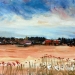 Het toont een landschap met bomen en mogelijk tenten, geschilderd met dunne witte lijnen.